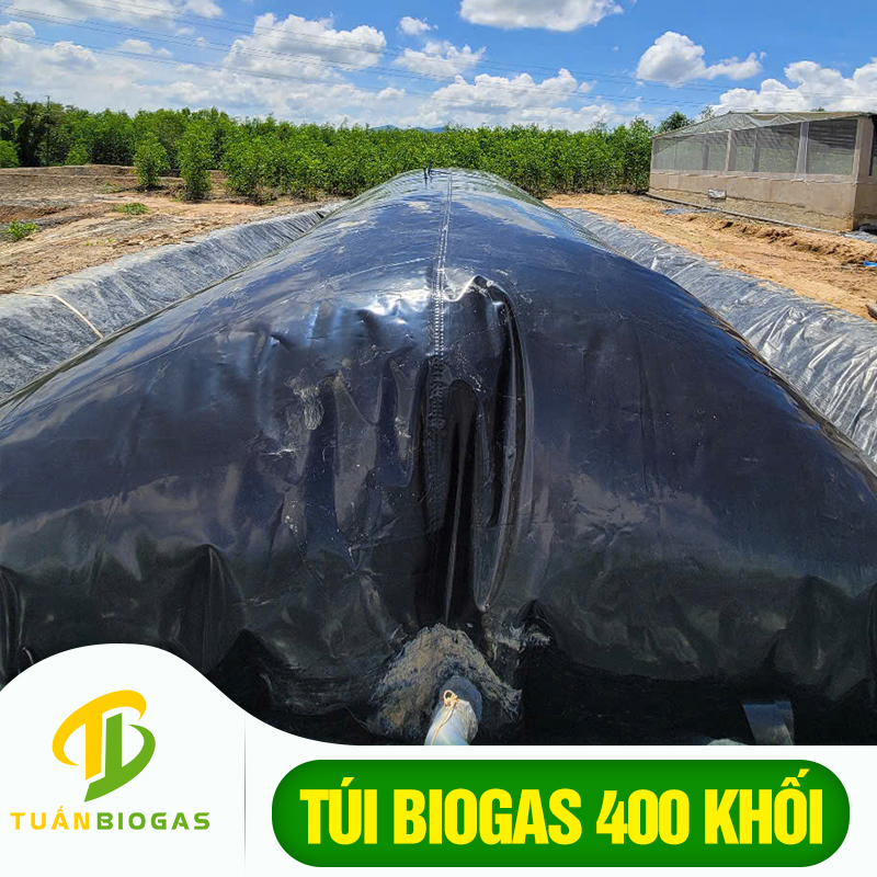 Túi biogas của Tuấn hiện 400 khối 1 túi nên trang trại vừa và nhỏ đủ xử lý.